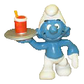 McDonald's Waiter Smurf Description: • White Towel/Orange Tray • McDonald's drink • M on the back of his head. Schlech#: mcd11 Year: 1996 Number Owned: 1 Need It: